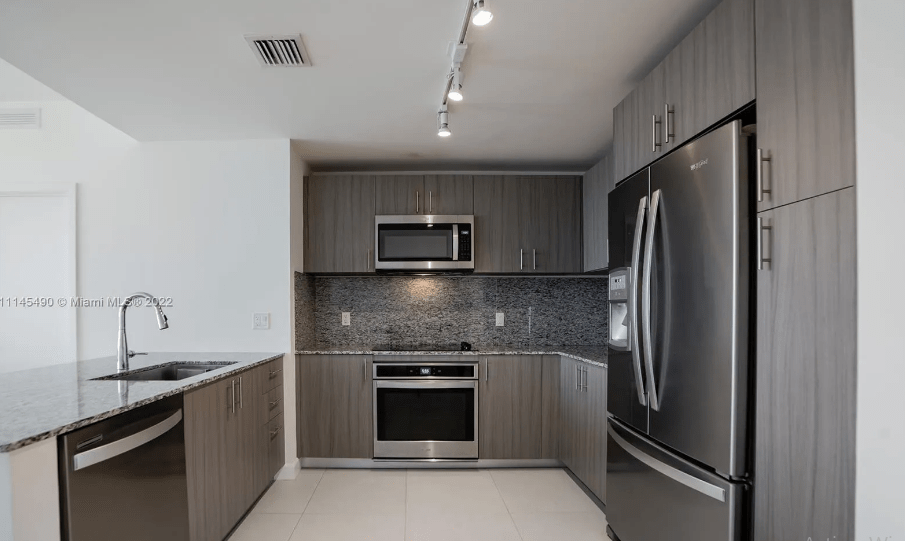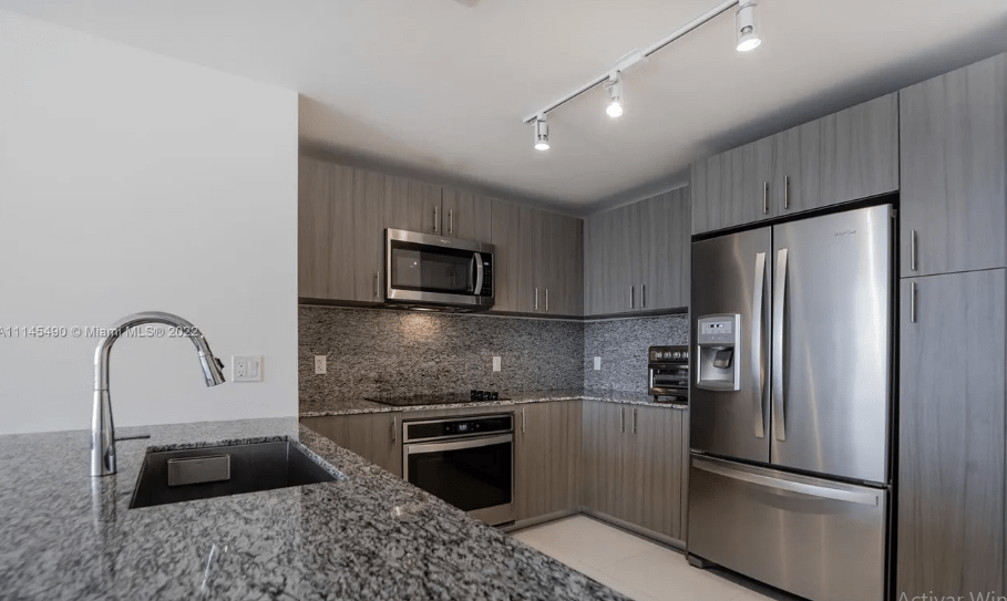 Disfrute de una cocina de concepto abierto con electrodomésticos de acero inoxidable, encimera de granito, dormitorio con vestidor y cama Murphy de tamaño