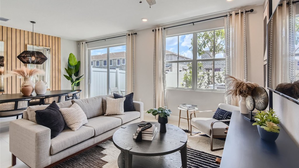La planta baja cuenta con un diseño versátil con una entrada cubierta acogedora, una gran sala perfecta para reuniones informales y una sala de estar independiente ideal para ocasiones más formales.